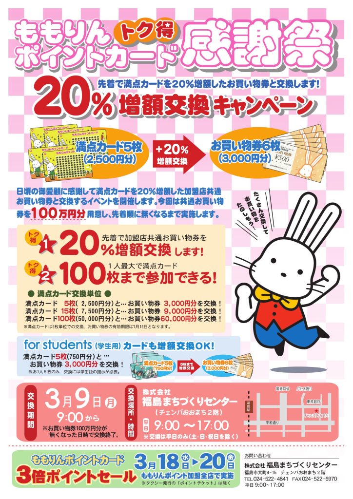 ■ゴール表示のあるももりんポイントカード「満点カード」(for Students含む)を、20%増額した「加盟店共通お買い物券」と交換できるイベントです!