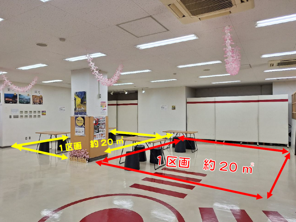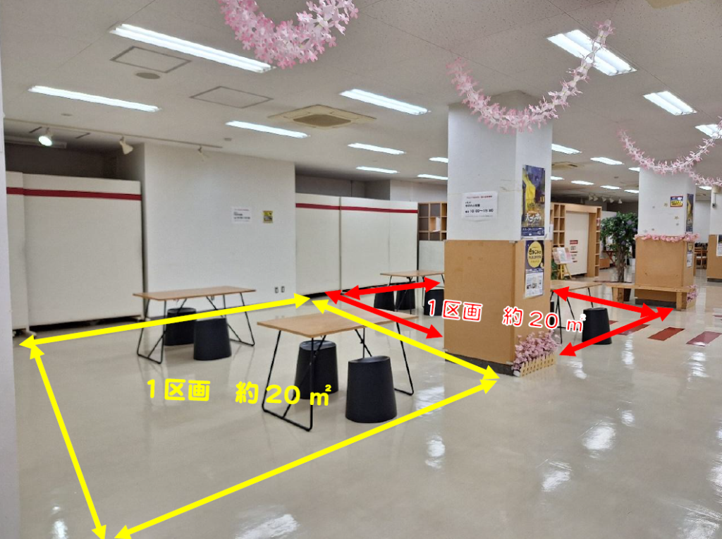 | 料金 | 展示:1,000円(税別)/1区画 販売:1,800円(税別)/1区画 ※全2区画あり(2区画全体利用も可) |